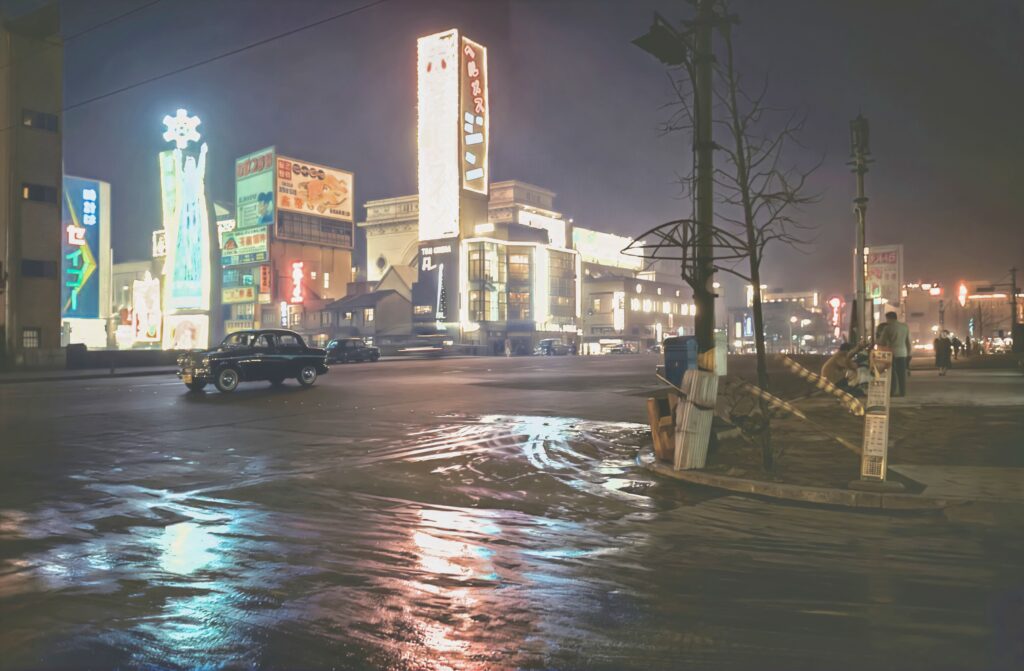 白黒写真のカラー化 2017年に亡くなった父親:山田勝彦が遺した白黒写真を何とか生かしたいと試行錯誤を重ねてきました。 とりあえず満足できるレベルになったので公開します。 昭和30年代の舞鶴湾の定期船 西大浦丸の船内の様子1 2 河辺中 秋 河辺中 冬 昭和34年4月の銀座の夜景です 昭和30年代の皇居前 昭和34年4月 東海道本線 浜松町駅付近の車窓です 昭和34年4月の東海道本線富士山付近の車窓です 昭和30年代の東舞鶴 四面山忠魂碑でのモデル撮影会1 2 昭和30年頃の東舞鶴 夜の三条通で道路の雪かきをする子供たち1 2 昭和30年頃の槍ヶ岳 山頂の風景です 昭和30年頃の槍ヶ岳登山の様子です 昭和30年頃の槍ヶ岳山頂の景色です 同じく上高地 焼岳小屋 昭和30年頃の上高地 清水屋ホテル付近の朝の風景です1 2 昭和30年頃の上高地 清水屋ホテルの売店の様子です 開通直後の名神高速道路1 2 3 昭和30年代の京都市街の風景です1 2 京都市内の撮影会のものだと思われます 昭和30年代 都をどりの時期の四条通 祇園界隈1 2 昭和30年頃の都をどり 昭和30年頃の祇園花見小路 昭和30年頃の八坂の塔界隈 昭和30年頃の花見客でにぎわう円山公園でお土産を売る大原女さん 昭和30年頃 バスガイド嬢と談笑する大原女さん 昭和40年頃の東本願寺から見た京都タワーです 昭和30年頃 東舞鶴の丸山公園撮影会での1枚です 2 昭和30年代の撮影会風景です1 2 さくらフィルム撮影会風景 撮影会風景 煙草でくつろぐモデルさん 撮影会 終了後 撮影会1 2 昭和30年8月の小橋海岸撮影会1 2 3 4 小橋撮影会風景 撮影会を見物する小橋地区の皆さんです 昭和30年頃の丸山公園撮影会でのスナップショットです 昭和30年頃の撮影会でのスナップショットです 1 2 3 4 昭和30年代 高浜海岸撮影会での1枚 高浜海岸撮影会風景 子守をする高浜町の子供たち 昭和30年頃の北吸桟橋です1 2 自衛艦での撮影会風景 昭和30年頃の北吸桟橋と造船所 造船所で整備中の客船 客船での撮影会 比叡山から見た琵琶湖1 2 昭和30年代の比叡山バス駐車場 昭和30年頃の京都駅前の風景です1 昭和30年頃の京都駅中央口 2 https://kyotolove.kyoto/I0000427 三代目京都駅 説明 京都駅塔屋からの風景1 2 昭和30年代始めの大阪駅前の風景1 2 昭和40年代 大阪梅田 阪急百貨店前 昭和30年頃の大阪ミナミの夜景1 2 3 昭和30年頃の御堂筋 昭和45年 大阪万博 にぎわうお祭り広場 太陽の塔